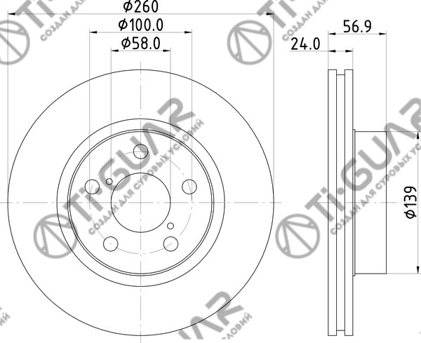 Диск тормозной /передний /правый /ПЕРФОРИРОВАННЫЙ /TI-GUAR для SUBARU Legasy B#1989-2003, Impreza G# 1992-2007; 260/24мм; TG-26300-AE090; RN1091V 0986478293 09567311