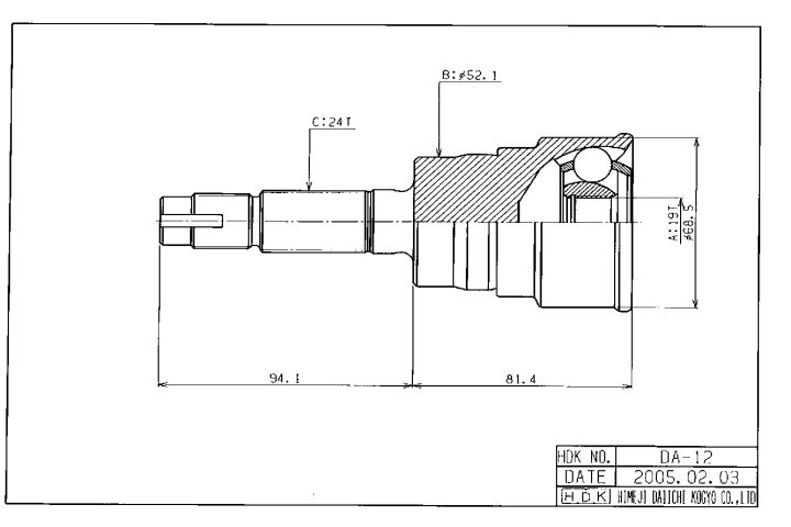 ШРУС наружный /левый HDK для Daihatsu Terios 1997- Cami 1999-; 19*52*24; DA-012; (CO-7510A TG-2812 TG2812Z48) 4341087406 0910012A48