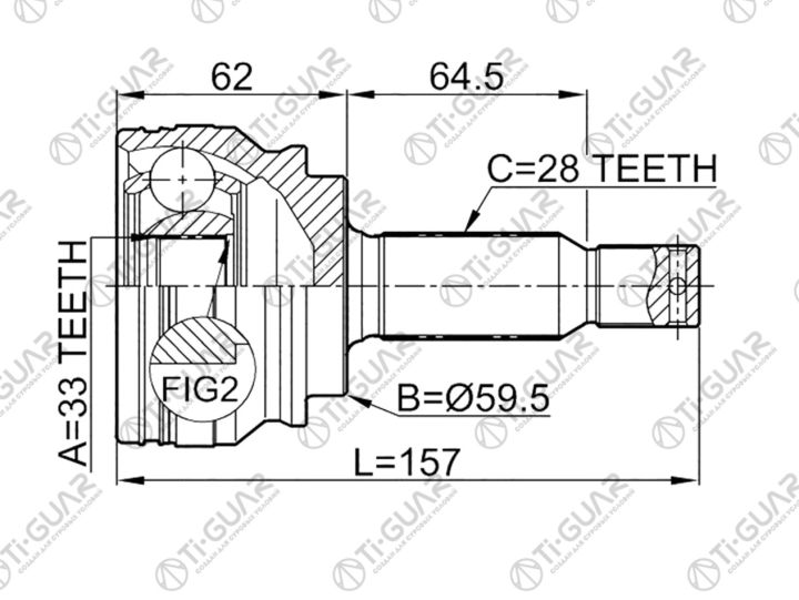 ШРУС наружный /TI-GUAR для Mitsubishi LANCER CYA CZA CXA 2007-, GALANT FORTIS CY4A /33*59.6*28; TG-7250; 0410CY34 2815A189 2815A190 MI050